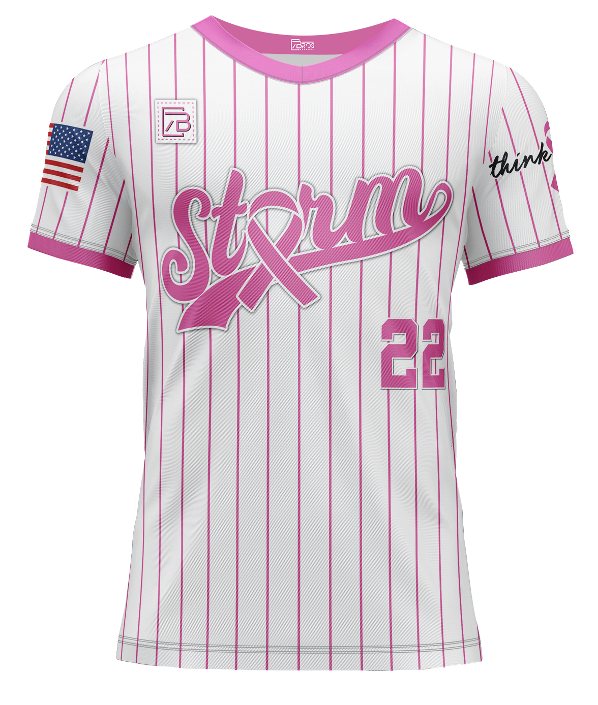 Saluda Storm Player Jersey - Breast Cancer Pinstripe