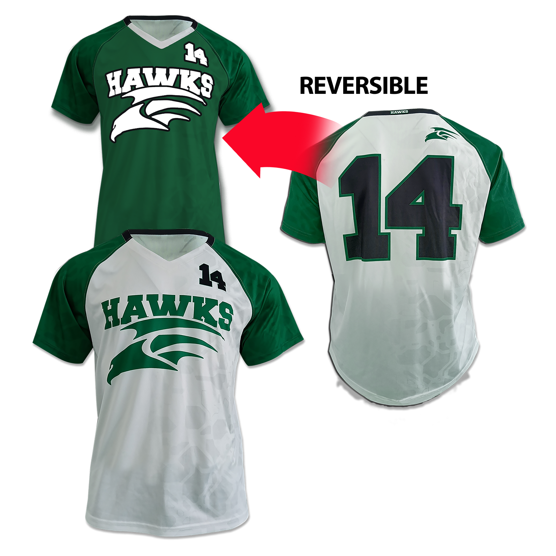 - The jersey features a reversible design with a V-neck construction, providing versatility and the option to switch between two different colors or designs for home and away games.