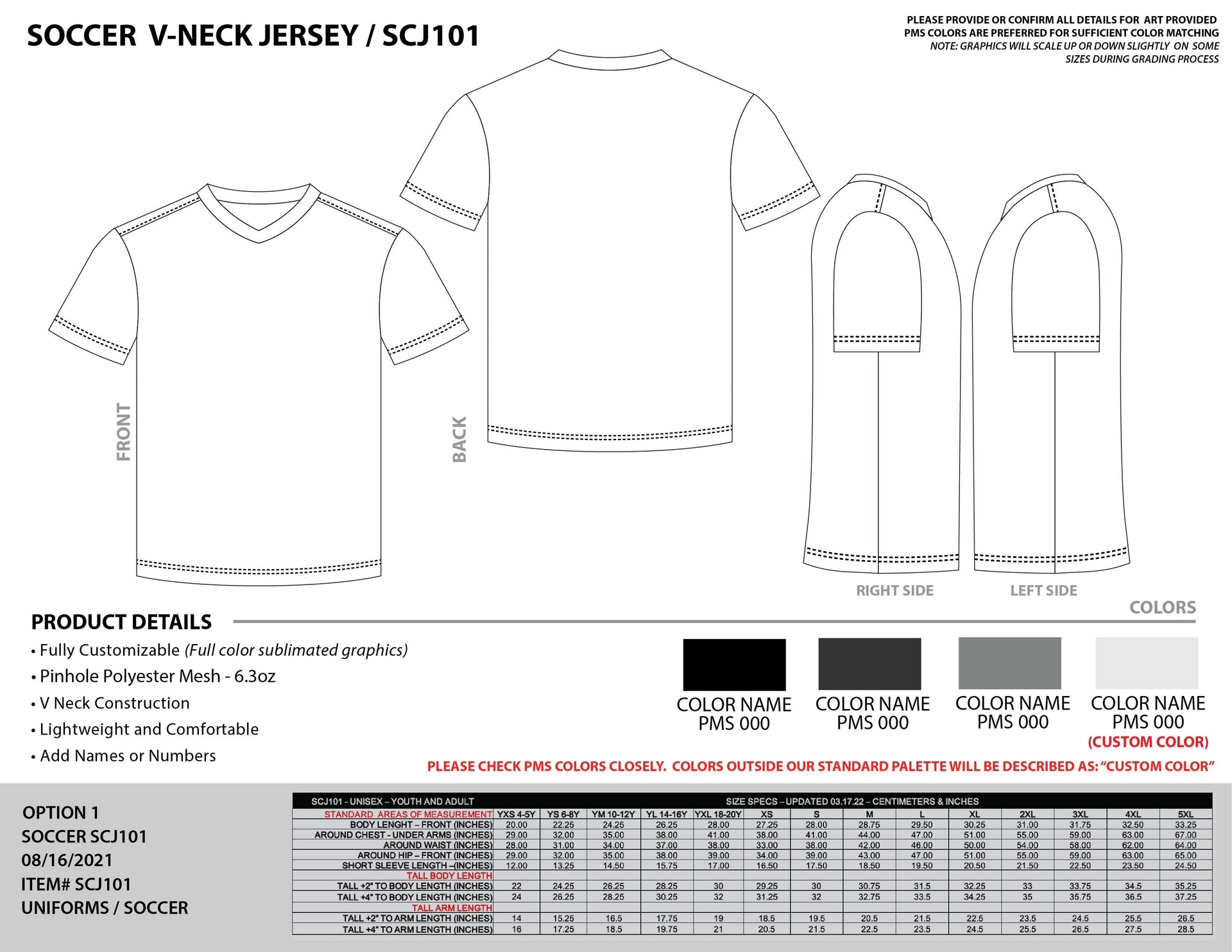 Introducing our Men's V-Neck Soccer Jersey, the perfect combination of style and performance. Designed for customization, this jersey features full-color sublimated graphics that can be personalized to represent your team or club.